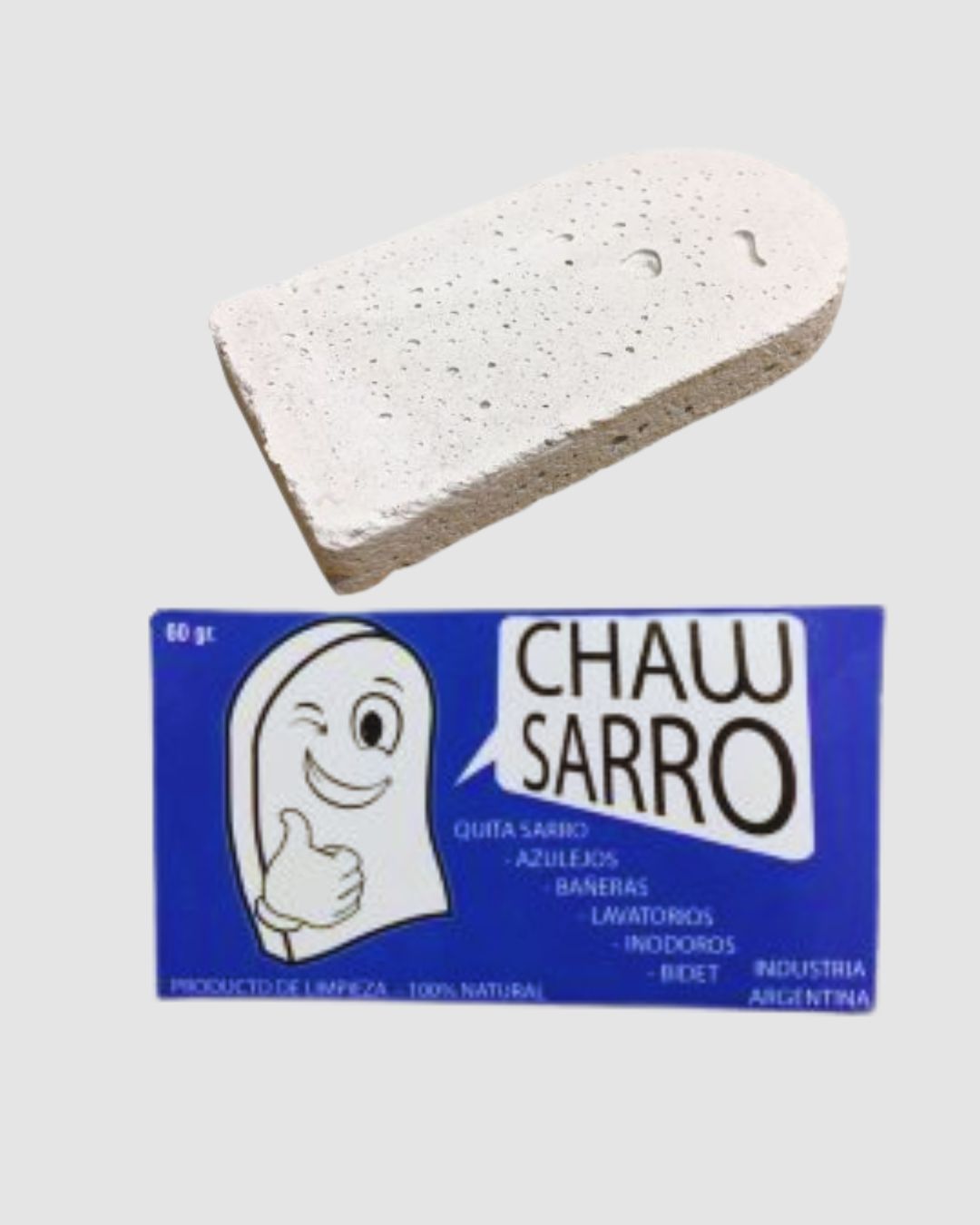 Chaw Sarro es una piedra de limpieza elaborada con componentes naturales, diseñada para eliminar sarro de superficies esmaltadas sin dañarlas.